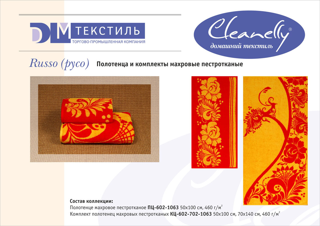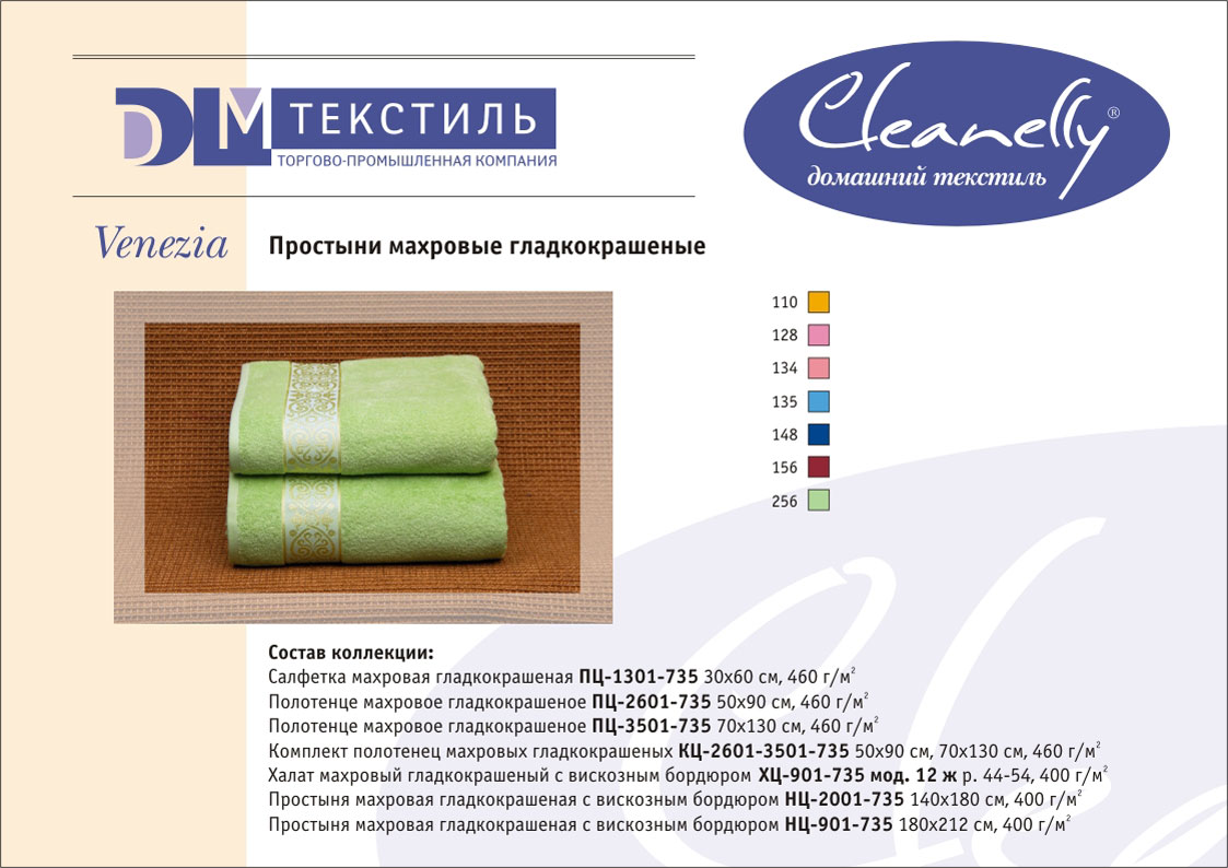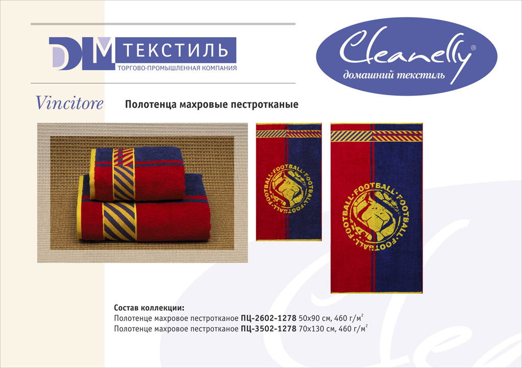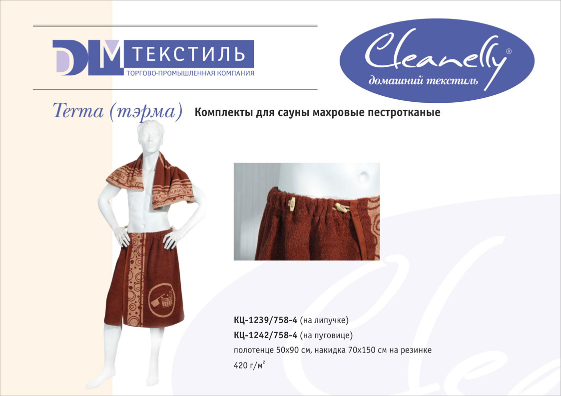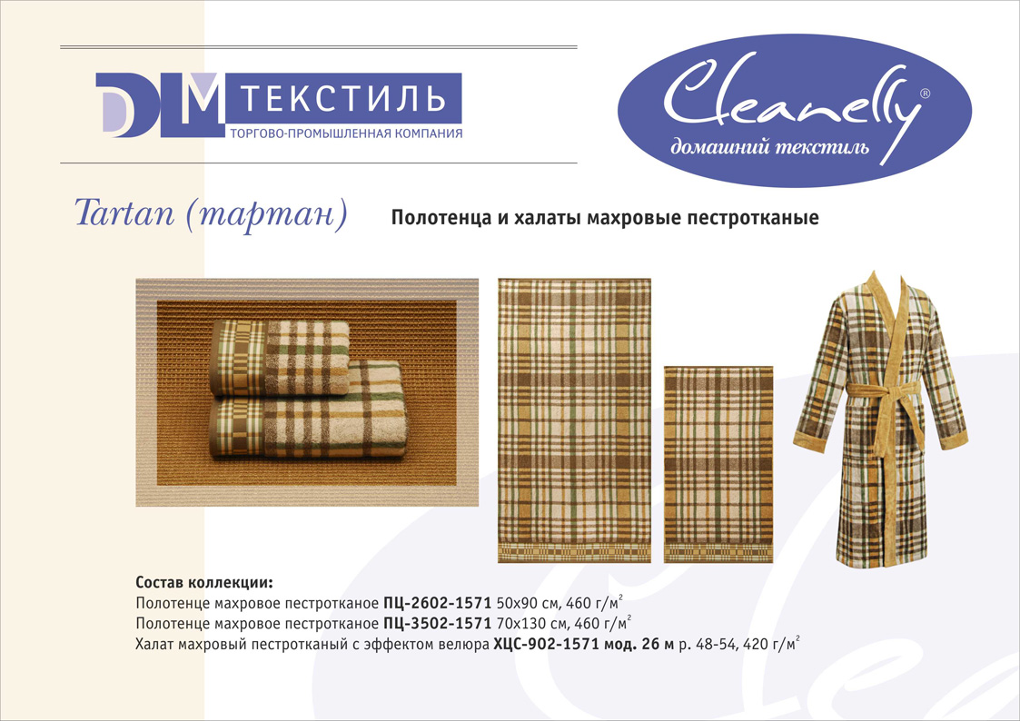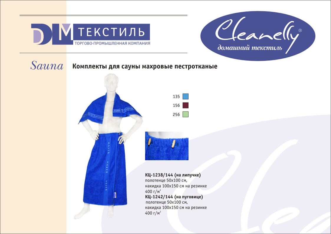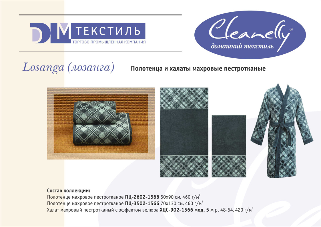 К концептуальной и тематической продукции относятся пестротканые полотенца и халаты женской, мужской, подростковой и детской линий, комплекты для спорта и сауны, а также сезонный ассортимент – пляжные полотенца и махровые простыни.