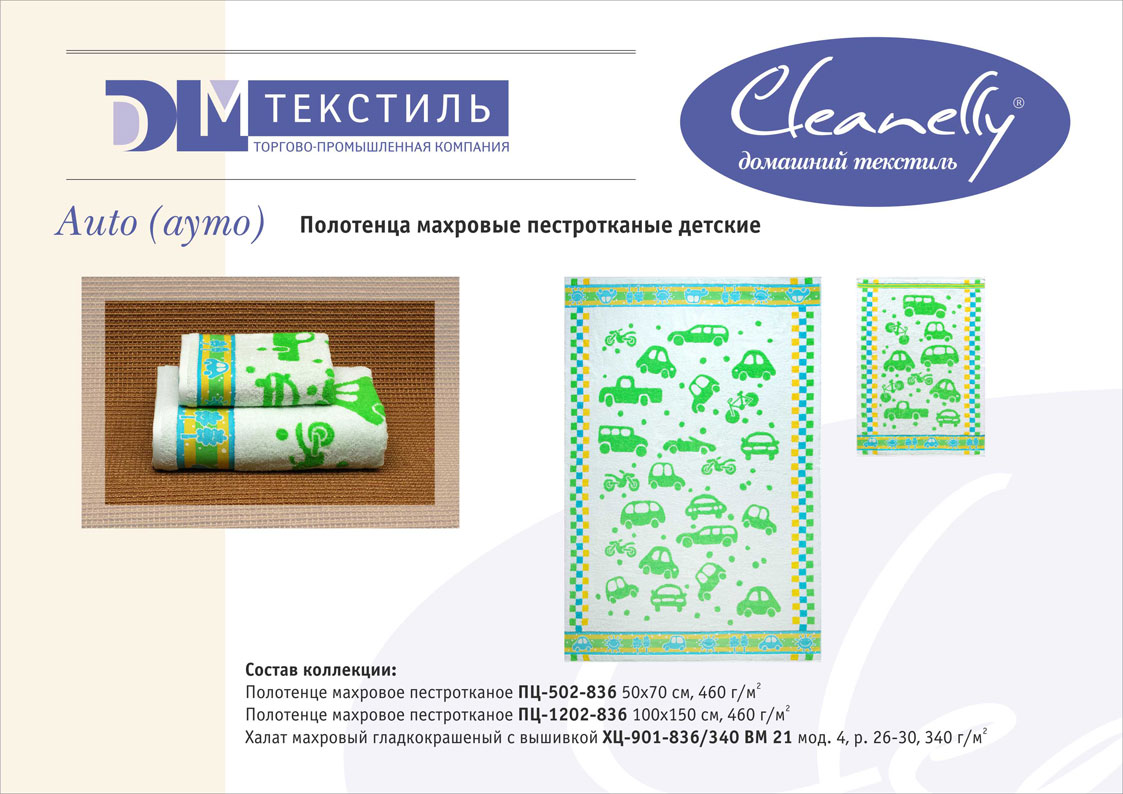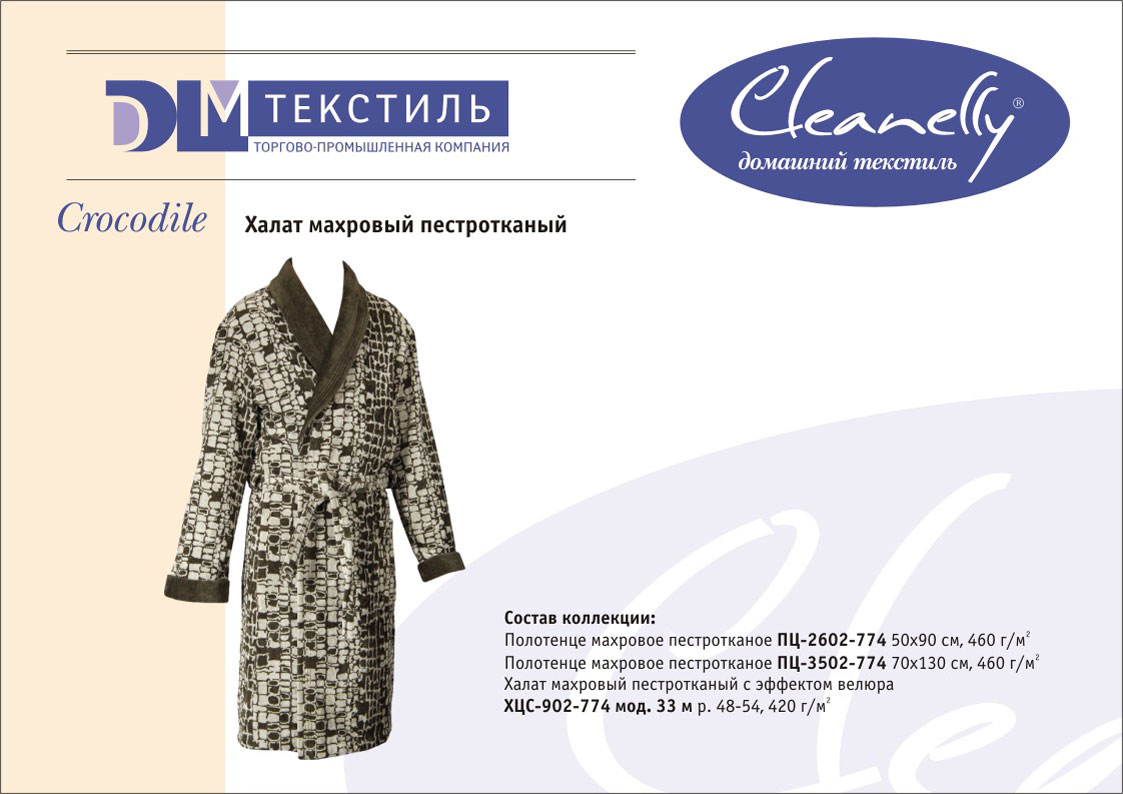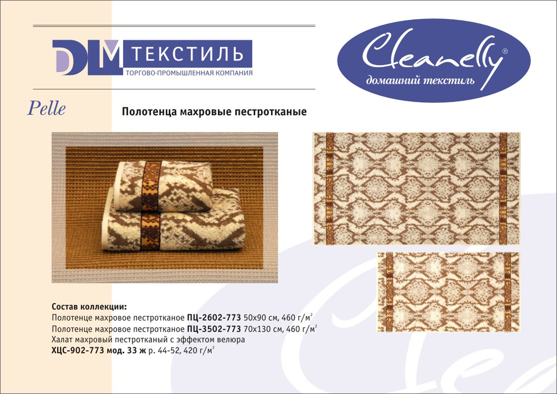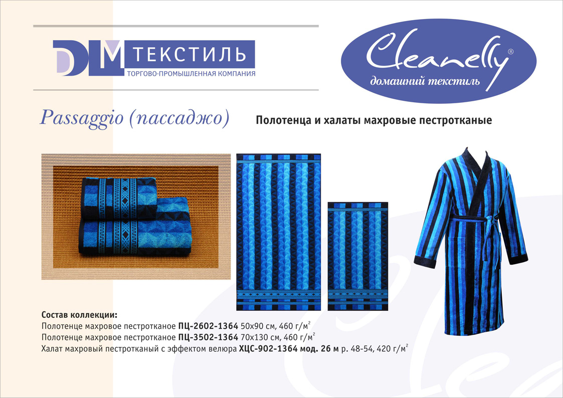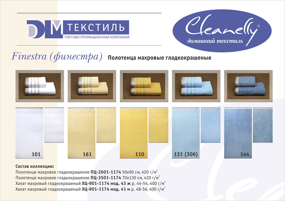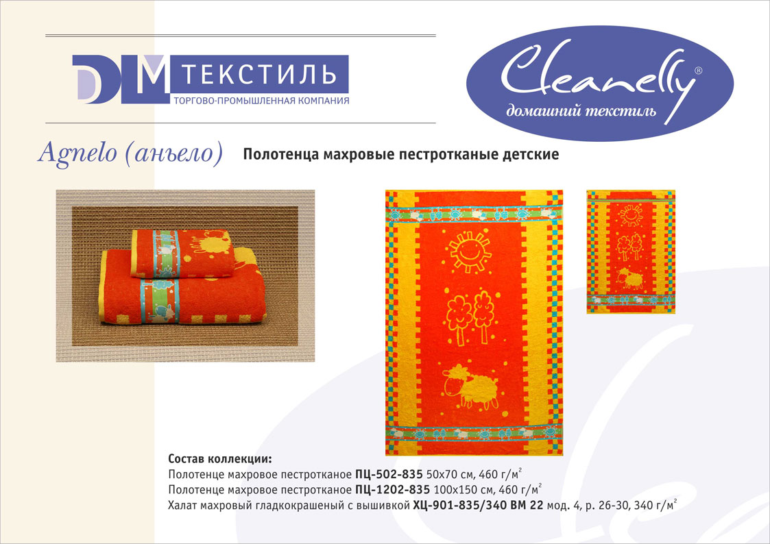 К концептуальной и тематической продукции относятся пестротканые полотенца и халаты женской, мужской, подростковой и детской линий, комплекты для спорта и сауны, а также сезонный ассортимент – пляжные полотенца и махровые простыни.