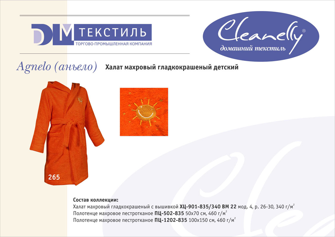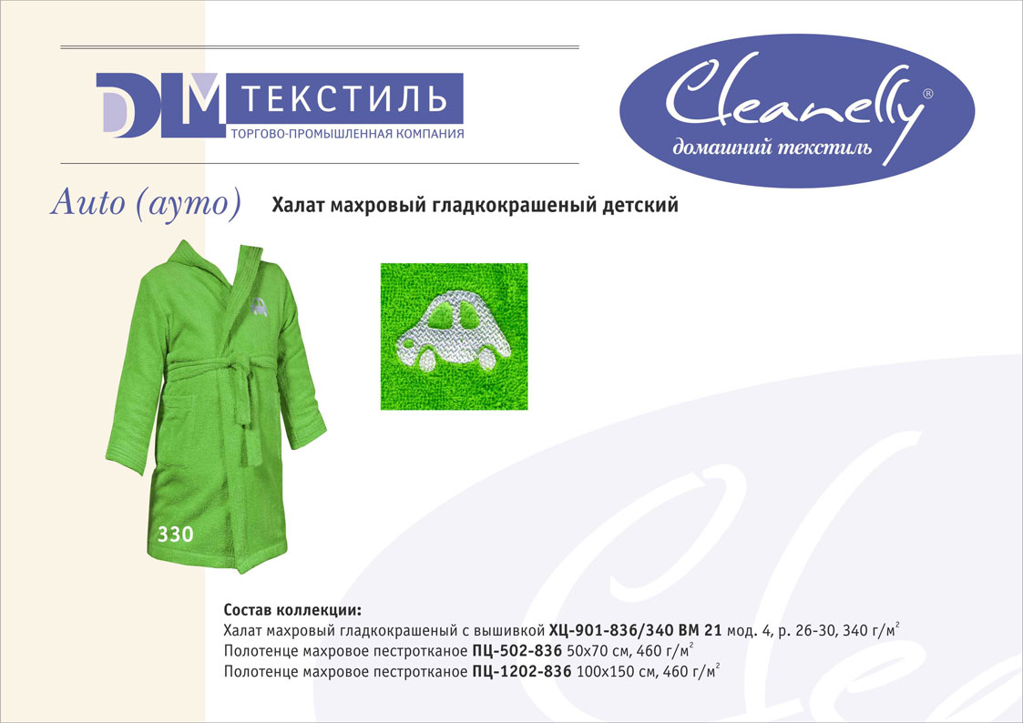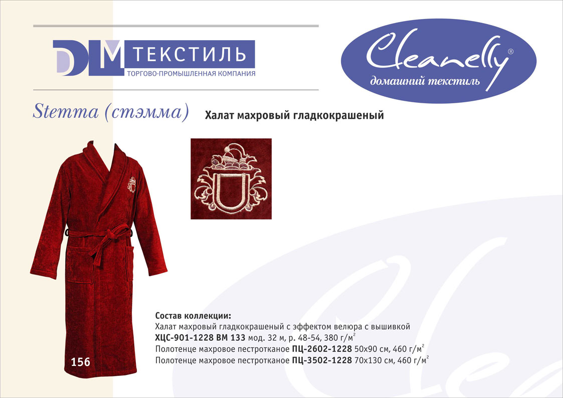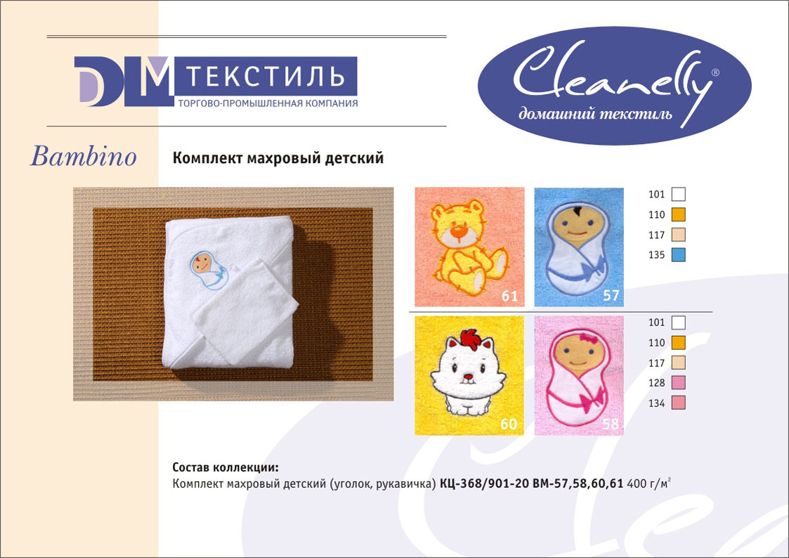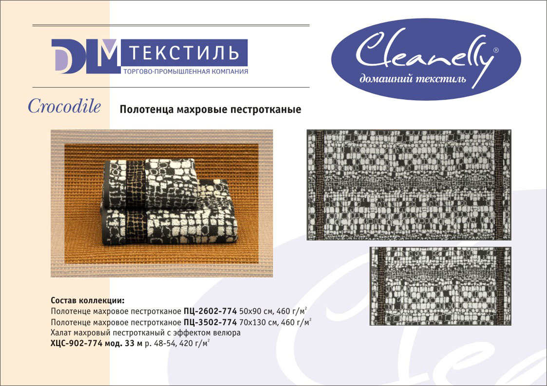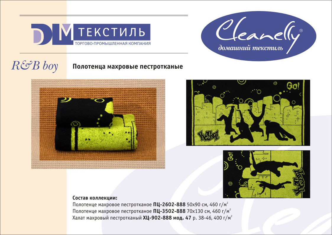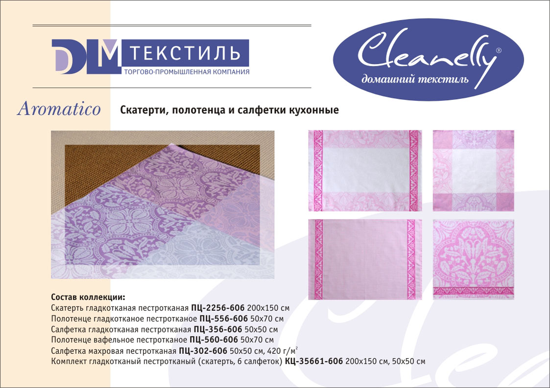 К концептуальной и тематической продукции относятся пестротканые полотенца и халаты женской, мужской, подростковой и детской линий, комплекты для спорта и сауны, а также сезонный ассортимент – пляжные полотенца и махровые простыни.