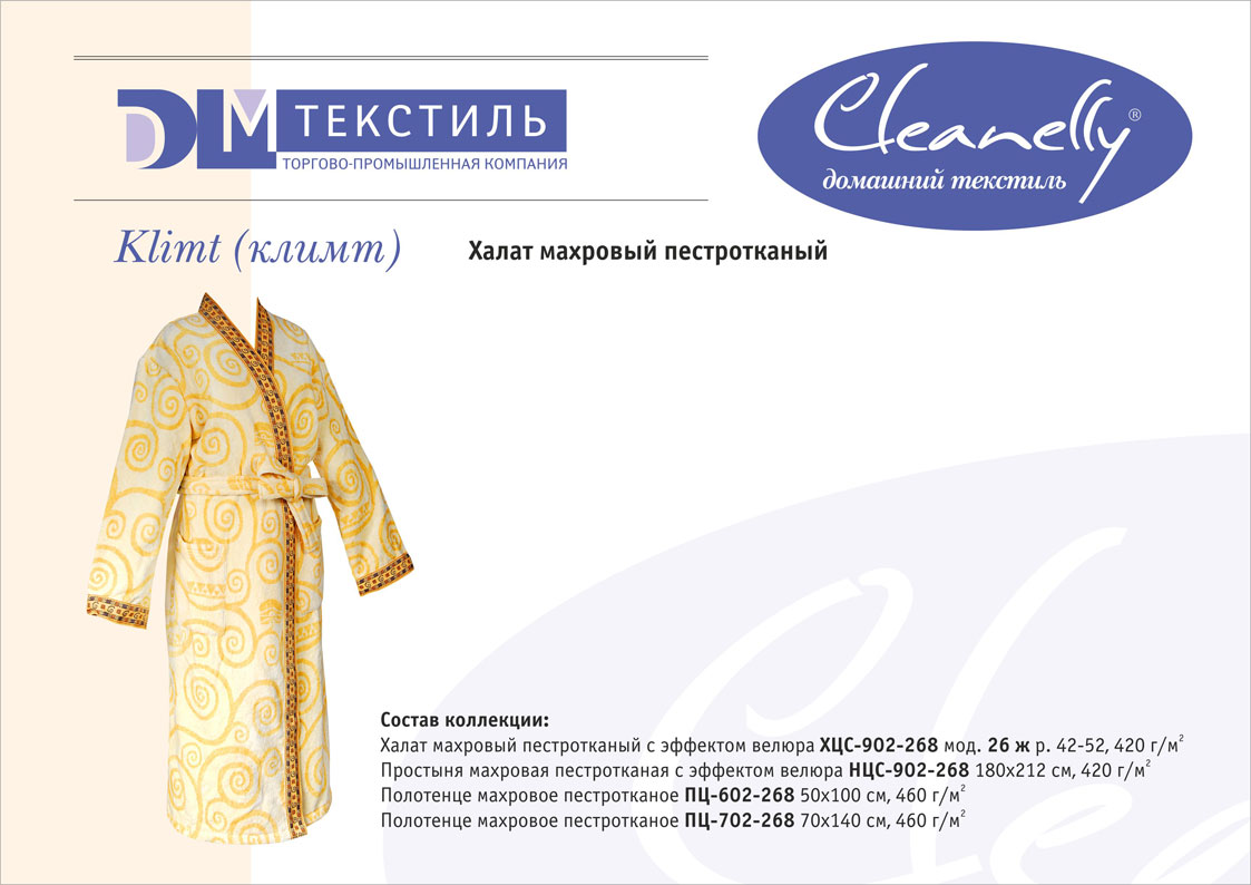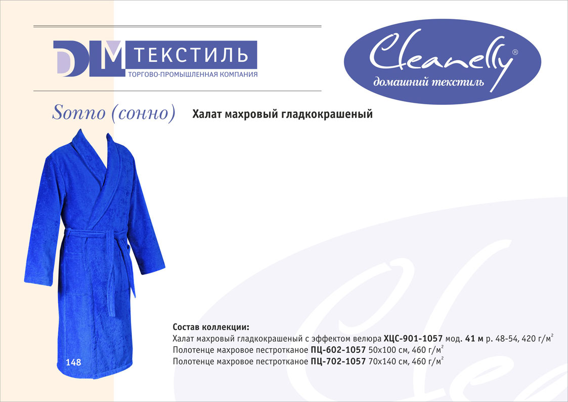 Классическое направление в ассортименте торговой марки Cleanelly представлено гладкокрашеными изделиями из махрового или вафельного полотна. Это направление включает женскую, мужскую, подростковую и детскую линии и объединяет в себе полотенца, салфетки, халаты, простыни, коврики для ванной и комплекты для сауны.